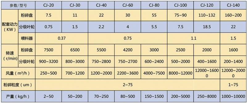 CJ系列中藥超細(xì)粉碎機(jī)參數(shù)